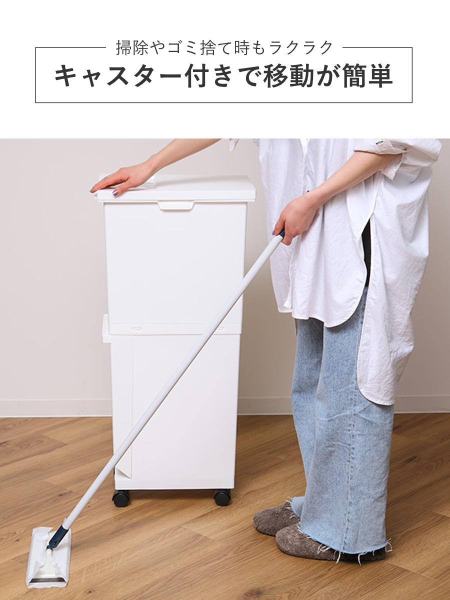 前後左右に動かしやすいキャスター付きで、ゴミ捨て時やお掃除をする時などラクに動かせます。キャスターは取り外し可能で、ゴミ箱を床に直接置くこともできます。