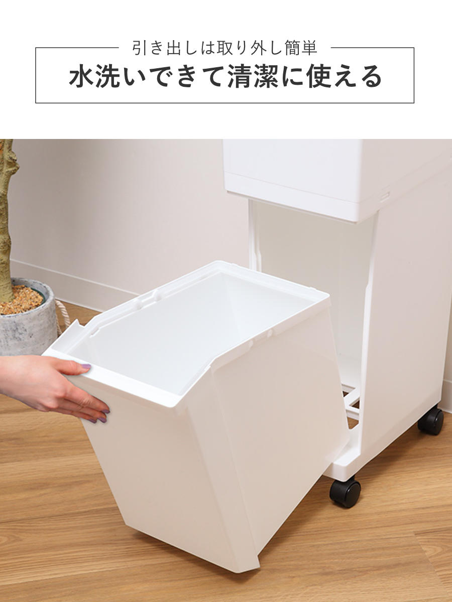 水をはじきやすいポリプロピレン製で、汚れてもサッと拭けてお手入れ簡単。また、引き出し部分の容器は取り外し可能で、汚れが気になった際は水洗いでき、清潔にお使いいただけます。