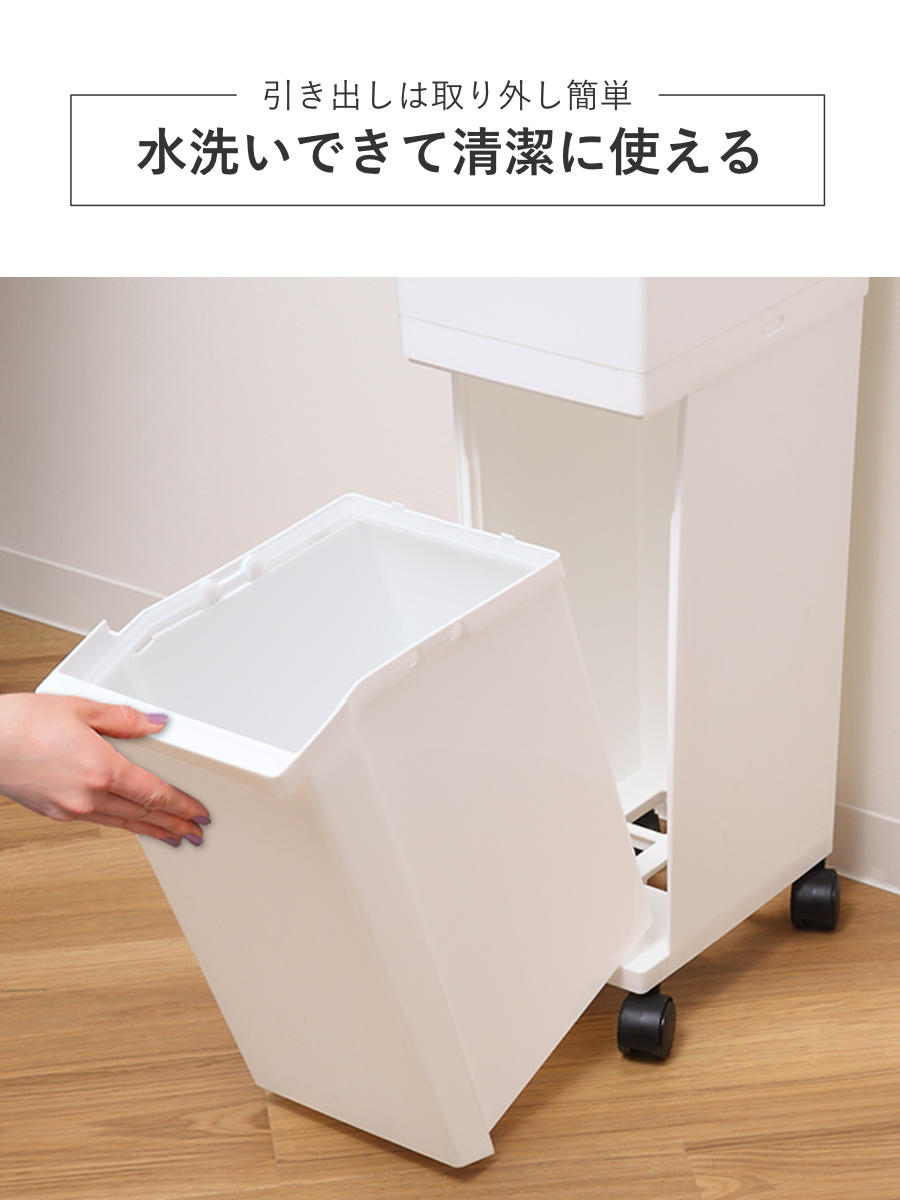 水をはじきやすいポリプロピレン製で、汚れてもサッと拭けてお手入れ簡単。また、引き出し部分の容器は取り外し可能で、汚れが気になった際は水洗いでき、清潔にお使いいただけます。