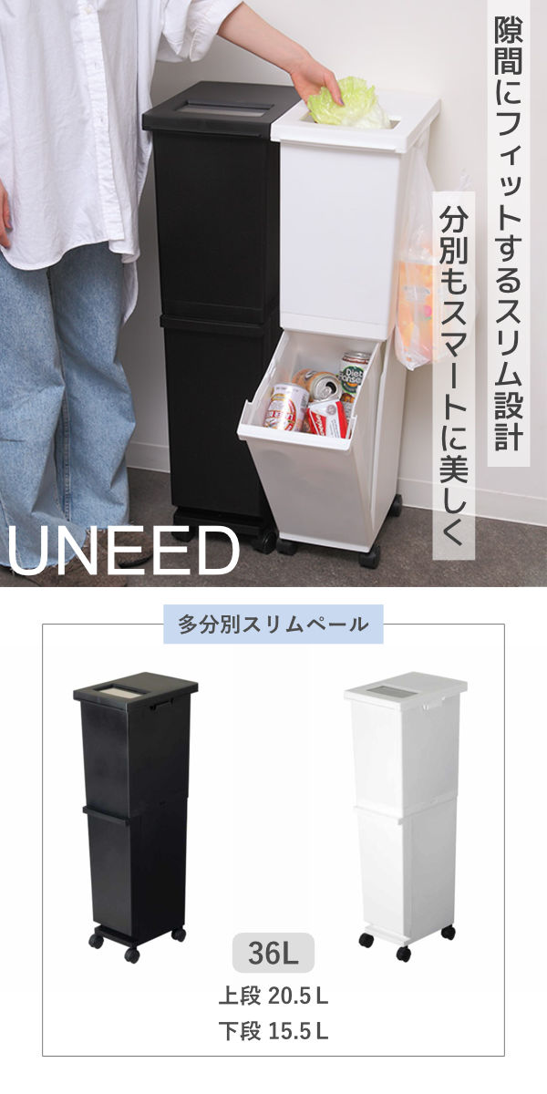 ゴミ箱 分別 36L 2段 ユニード 多分別スリムペール 4分別