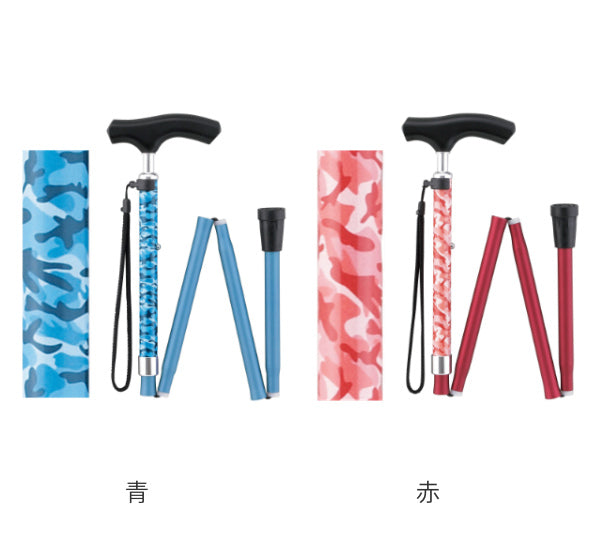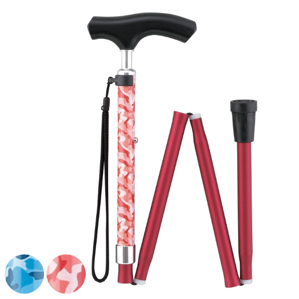 握りやすく手が疲れにくい迷彩柄折りたたみステッキ