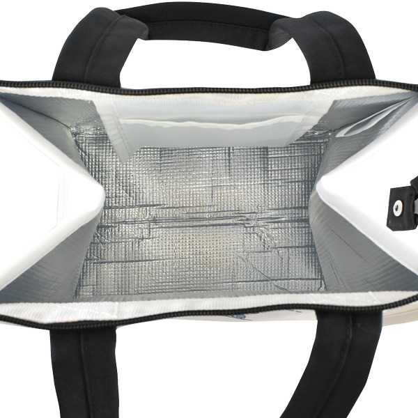 ●内側はアルミ貼りになっていて、保冷効果があります。