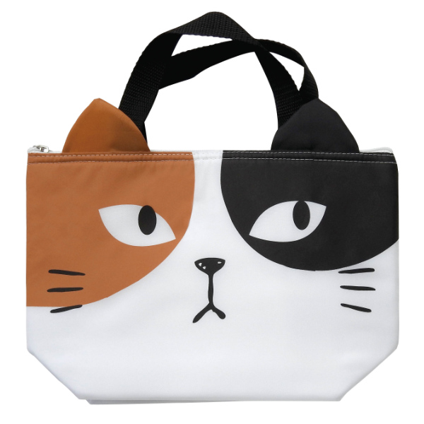 耳がぴょこん!とした癒されるかわいい猫のデザインで、ランチトート以外にも小物入れやちょっとしたお出かけなどにもお使いいただけます。