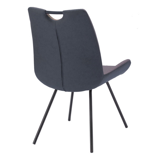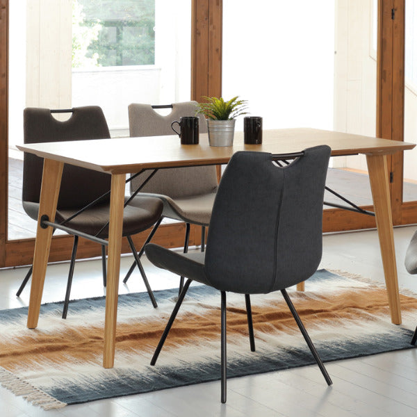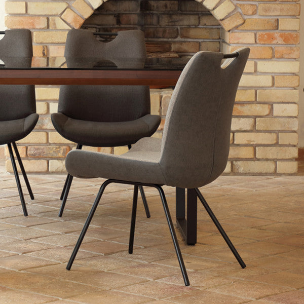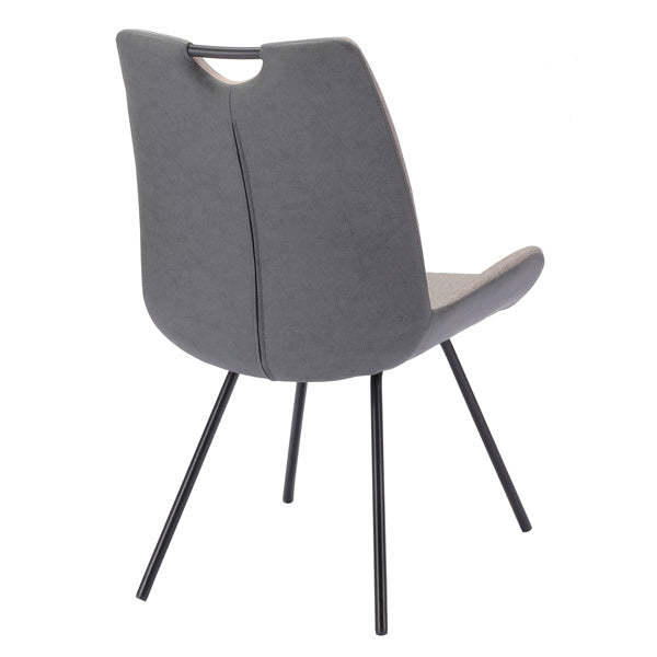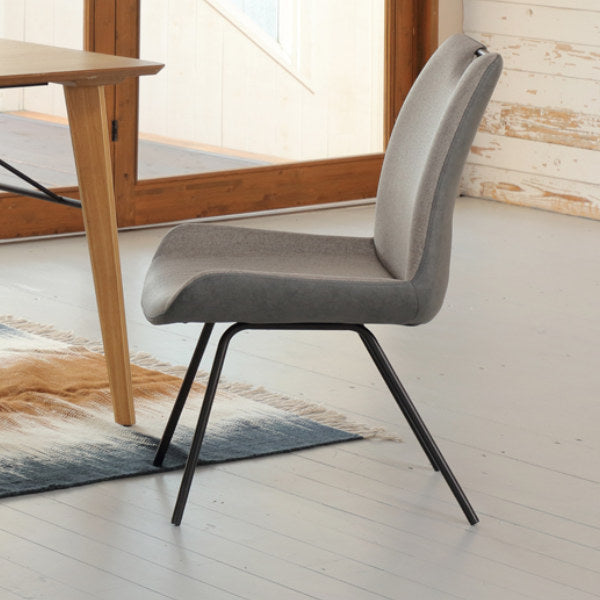 正面は通気性の良いファブリック生地を使用し、背面にはお手入れのしやすい合成皮革を使用したおしゃれなバイカラーチェアです。グレーの色合いが柔らかく落ち着いているので、北欧系のインテリアにもピッタリです。