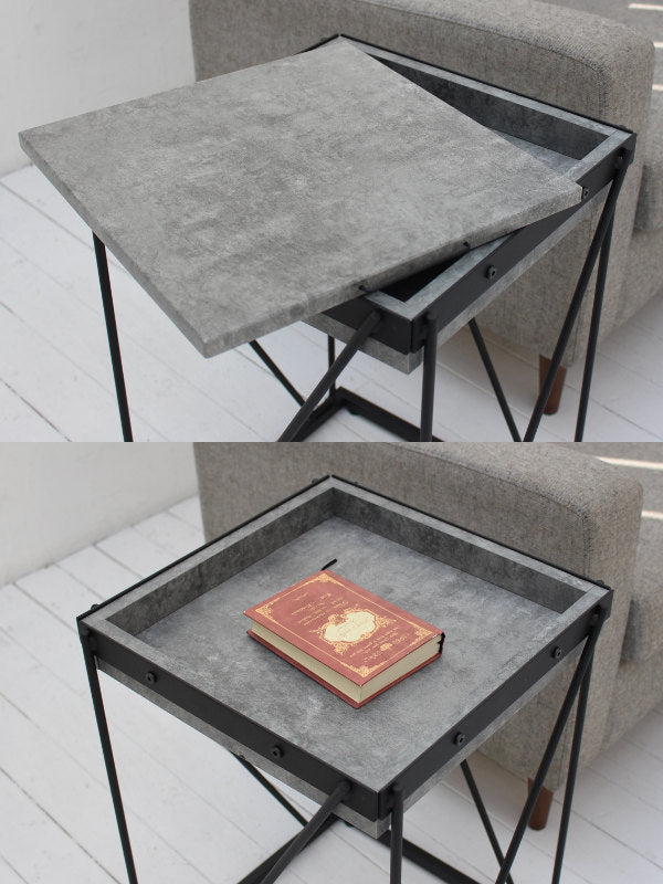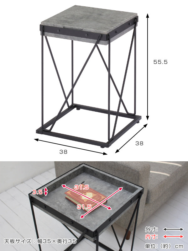 サイドテーブル 高さ55.5cm Mortero モルテロ コンクリート柄 高級感 スチール 収納 テーブル