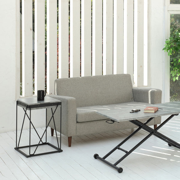ライトグレーのコンリート柄に黒のスチール脚が落ち着いた印象を与えます。可愛くなりすぎずシックなデザインでお部屋を上品な空間に演出します。