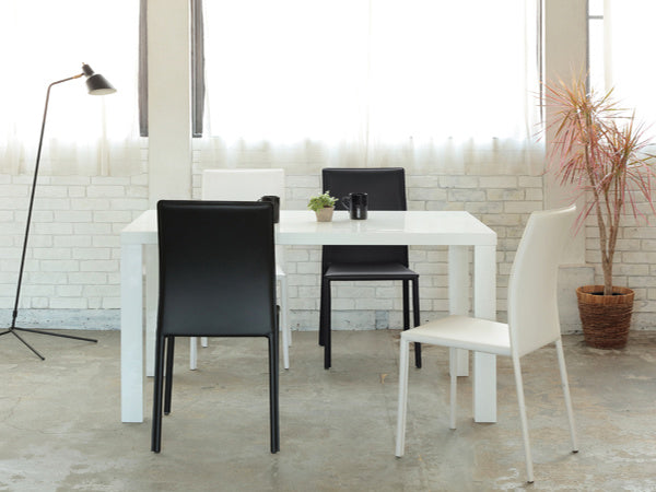 流行りに左右されないスタンダードなフォルムで、永く愛せるデザインが魅力のダイニングテーブルです。清涼感のあるダイニング空間を作りたい方や、モノトーンでのコーディネートを好む方にお勧めです。