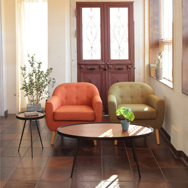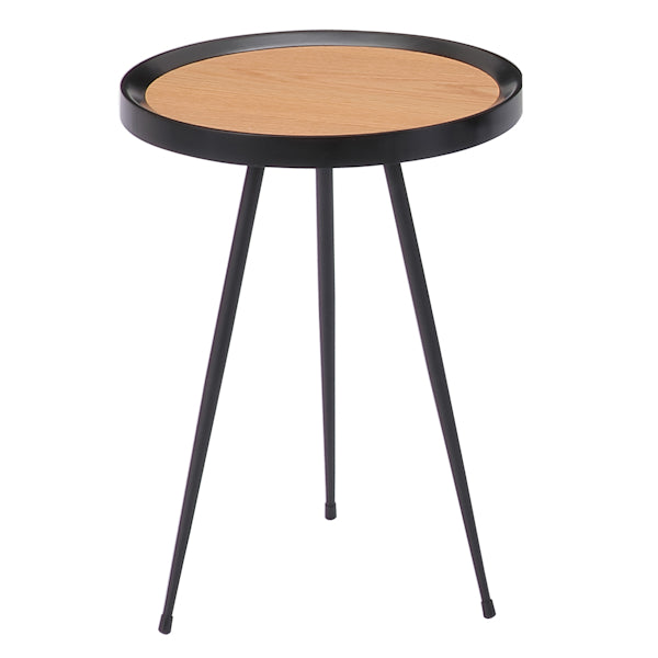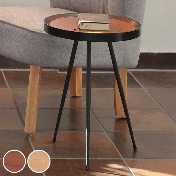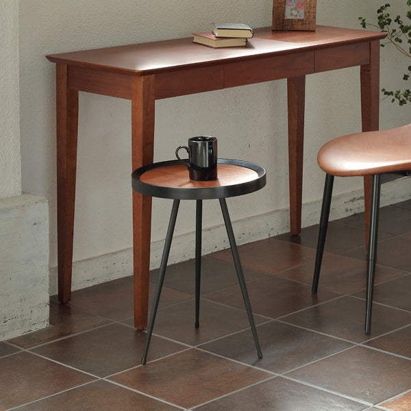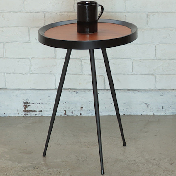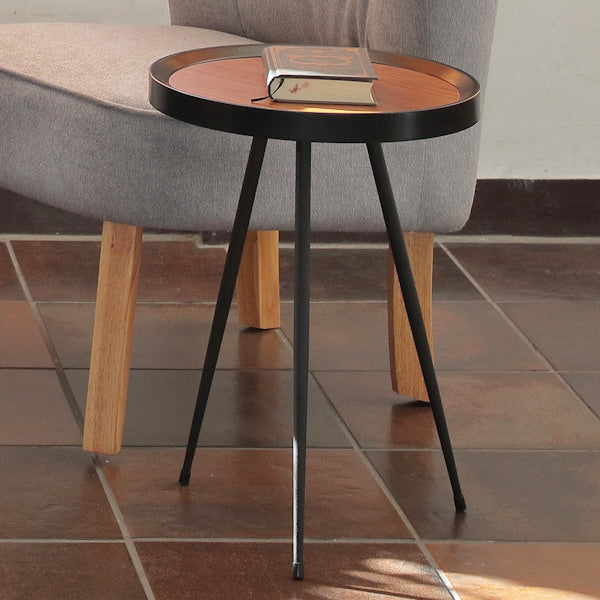 天然木の天板にエッジのブラックが冴える、美しいサイドテーブルです。粉体塗装を施した脚部がヴィンテージ感を演出し、調和のとれたモダンなデザインになっています。