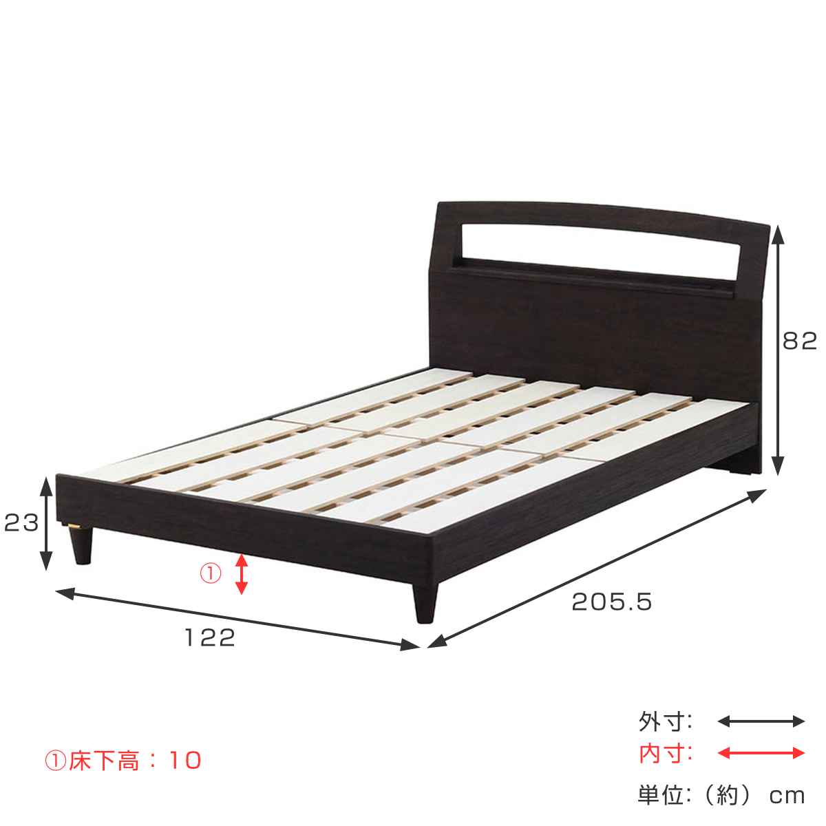 | サイズ | 約 幅122×奥行205.5×高さ82(cm) 床面高さ:約 23cm 床下高:約 10cm |