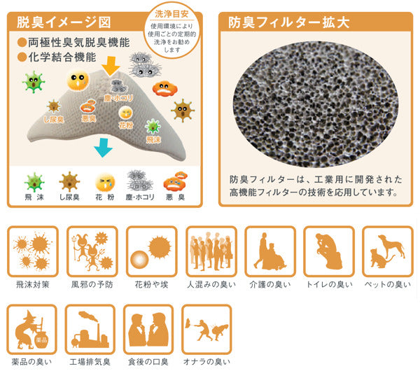 工業用に開発された技術を応用して作られた防臭フィルターで、あらゆる臭いに対応しています。