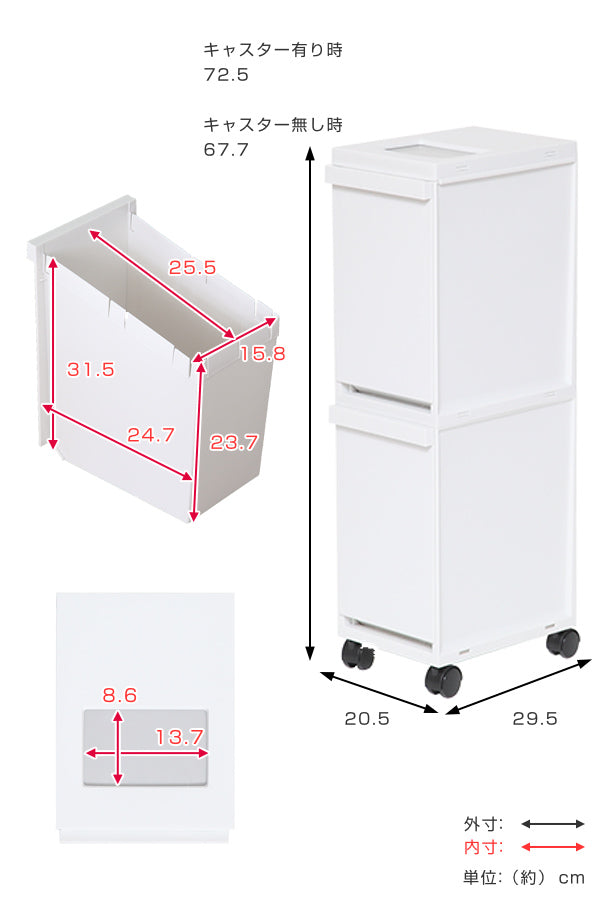 | サイズ | 約 幅20.5×奥行29.5×高さ72.5(cm) キャスター無時高さ:約67.7(cm) |