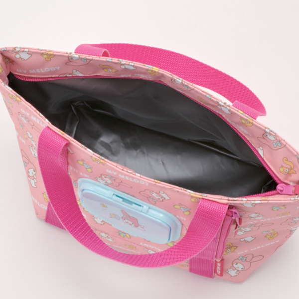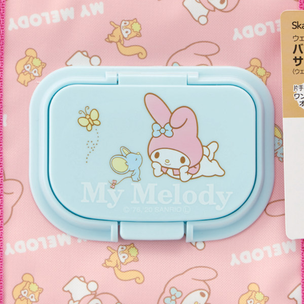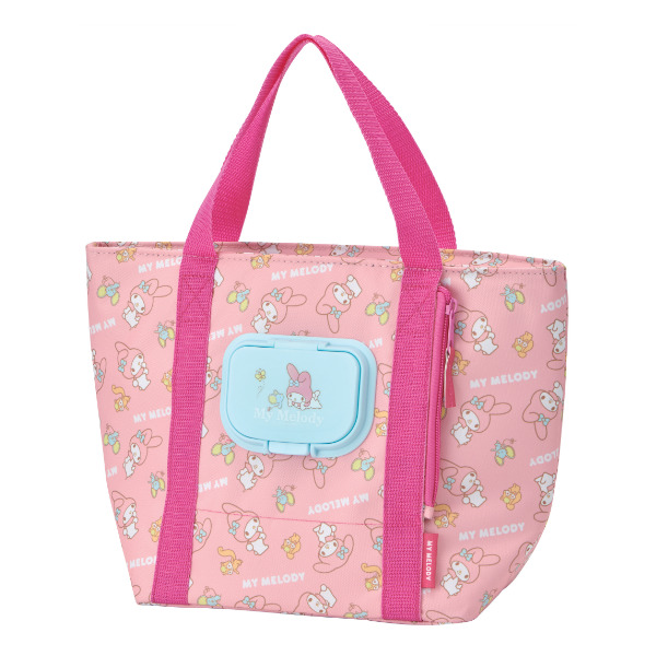 ●ウェットティッシュをバッグに入れたままサッと取り出せる便利なポケットが付いたマイメロディのランチバッグです。