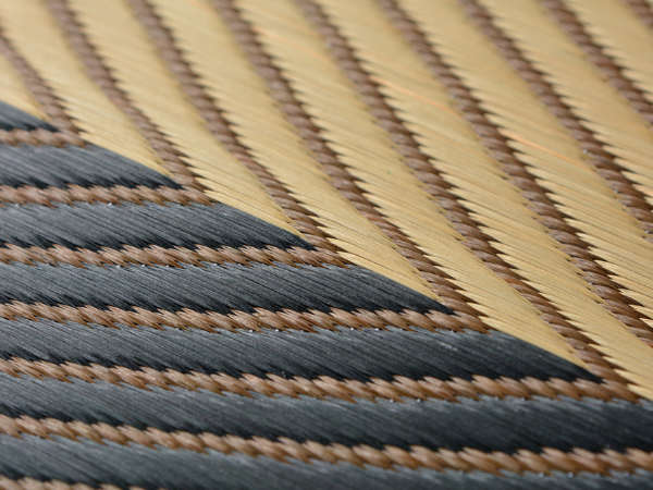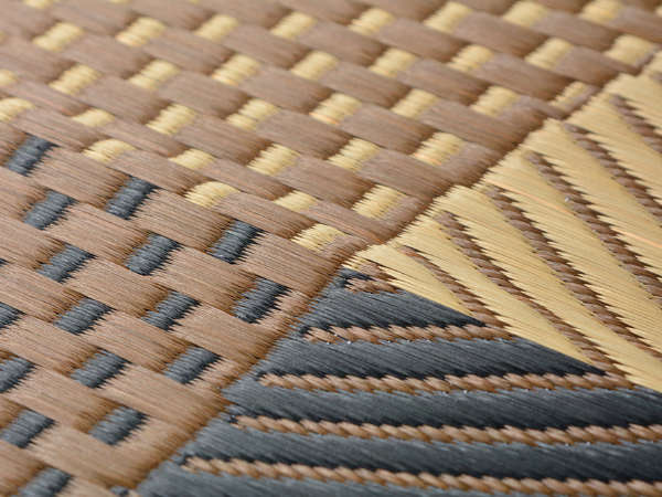 最も一般的で普及している織り方である紋織り。い草を織り込む経糸の開口を変えて複雑な紋様を織り出し、様々な図柄を表現しやすいため、応用範囲が広いのも特徴です。職人が技巧を凝らした織柄の変化は個性的な表情が出せます。