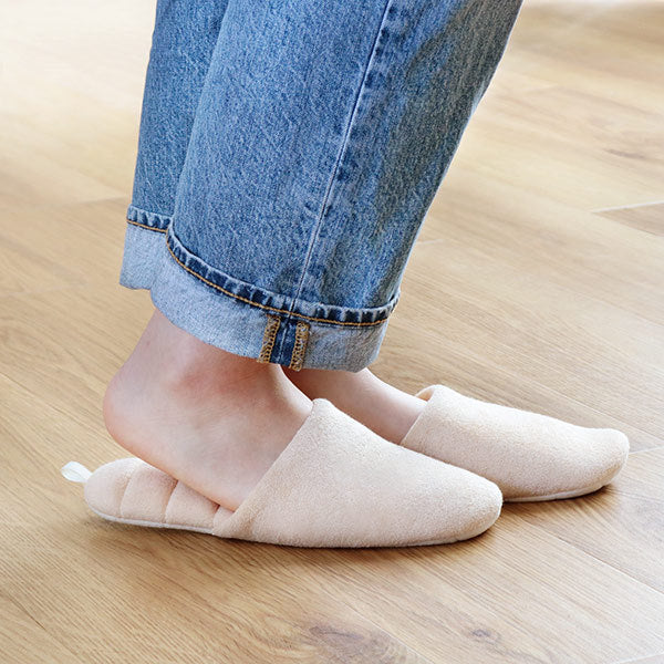 スリッパが汚れてしまっても、ジャブジャブ洗って絞れます。ご自宅の洗濯機でも丸洗いすることができるので、気軽に洗濯ができます。洗った後は、きゅーっと絞って陰干しすれば、元通り。衛生面でも安心してお使いいただけます。
