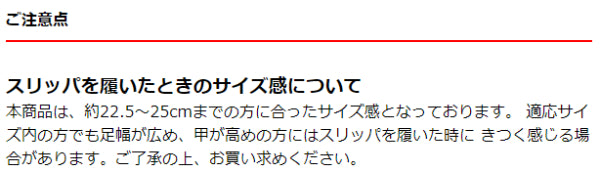本商品は、約22.5~25cmまでの方に合ったサイズ感となっております。 適応サイズ内の方でも足幅が広め、甲が高めの方にはスリッパを履いた時に きつく感じる場合があります。ご了承の上、お買い求めください。