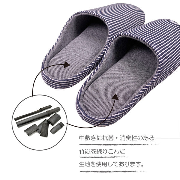 スリッパの中敷きに、抗菌・消臭性のある竹炭を織り込んだ生地を使用しております。