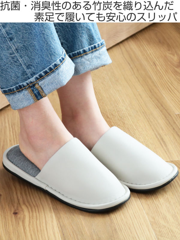 スリッパ L 25~27.5cm 抗菌 消臭 竹炭 フェイクレザー メンズ レディース