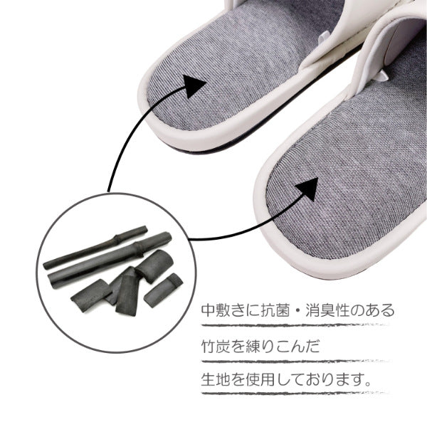 スリッパの中敷きに、抗菌・消臭性のある竹炭を織り込んだ生地を使用しております。