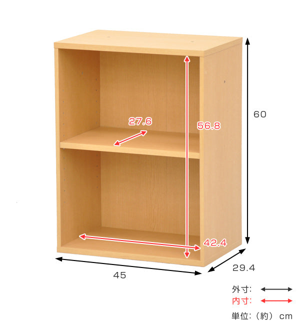 本棚 2段 組み合わせラック プレージ 高さ60cm 幅45cm