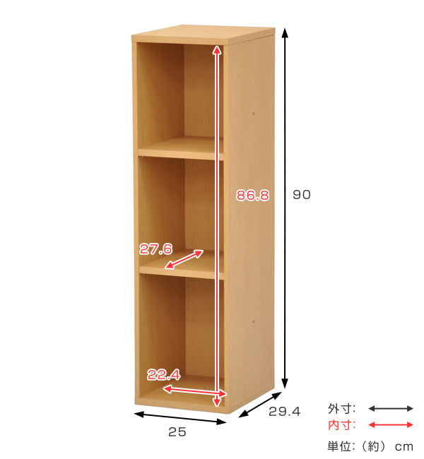 本棚 3段 組み合わせラック プレージ 高さ90cm 幅25cm