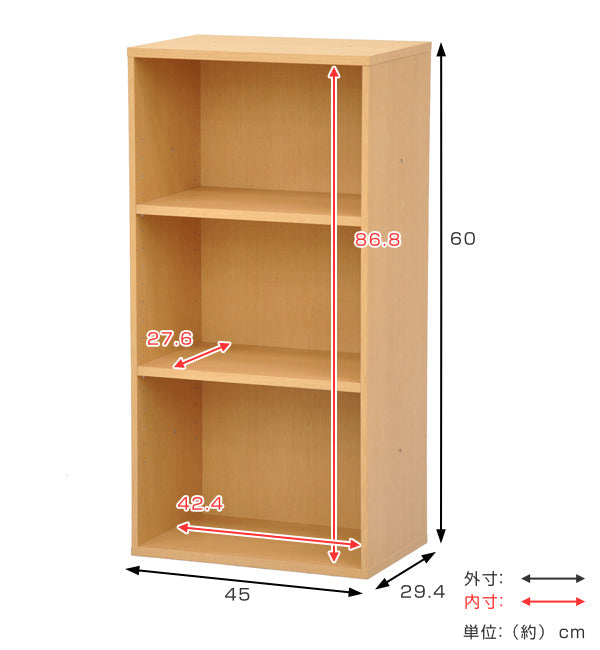 本棚 3段 組み合わせラック プレージ 高さ90cm 幅45cm