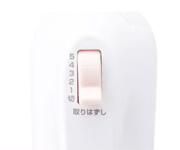 手元のレバーで5段階のスピード調整ができます。調整は親指で簡単に切り替えられるので操作も簡単。また、ビーターもワンタッチで取りはずせます。