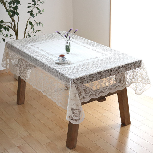テーブルクロス 140×220cm 撥水加工 長方形 レース 日本製