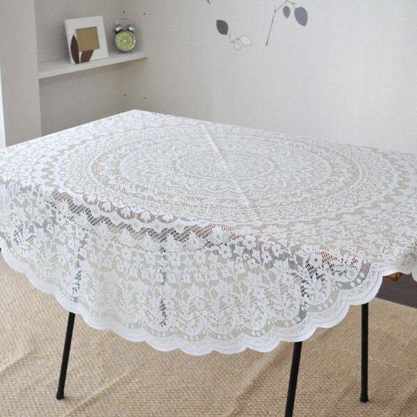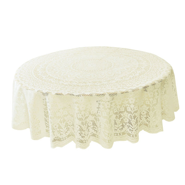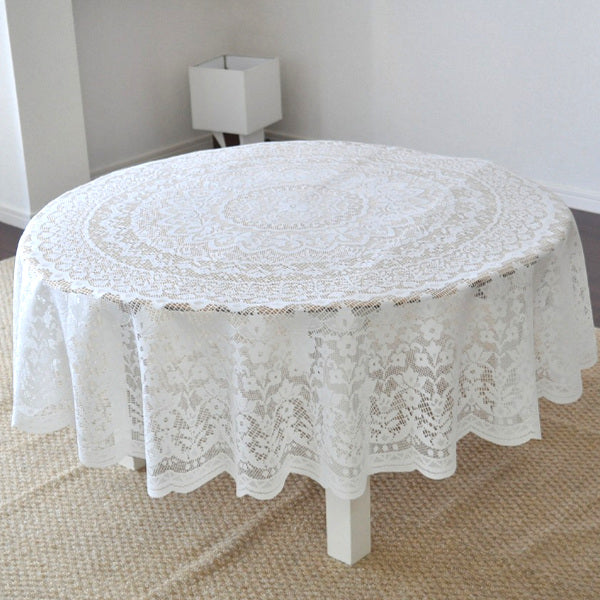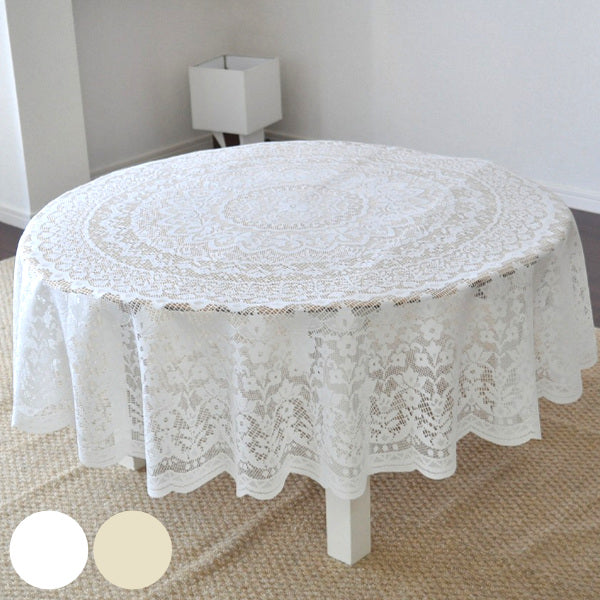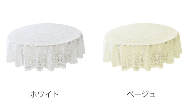テーブルクロス 150cm 撥水加工 円 総レース 日本製