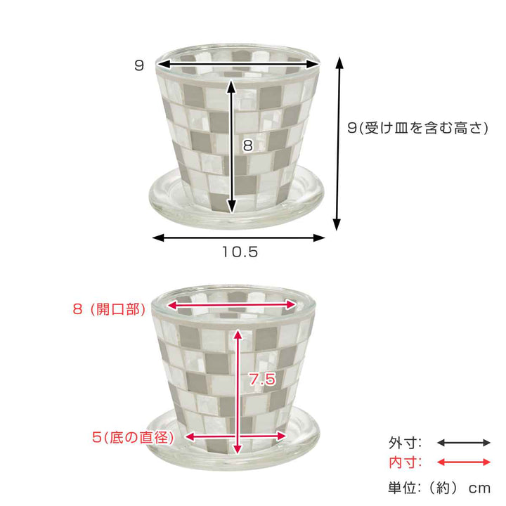 プランター 植木鉢 モザイクガラスプラントポット S ソーサー付き ガラス製