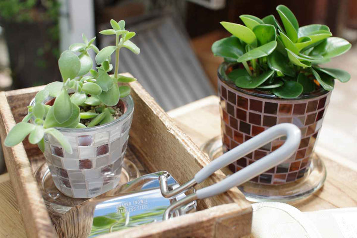 キッチン、テーブル、洗面所、お手洗いなど、ちょっとインテリアが欲しいところに置くのにちょうどいいサイズ感です。受け皿をお使いいただくことで、屋内でも安心して置くことができます。