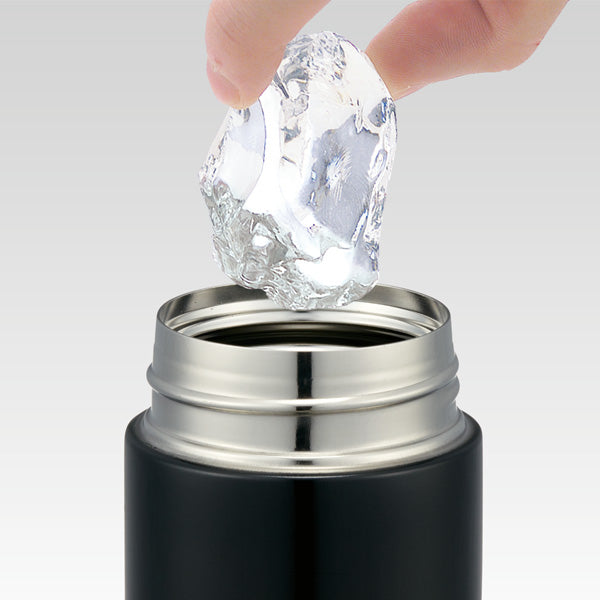 水筒の口は広口なので大きな氷も入れやすくなっています。また、お手入れの際もしっかり洗えて衛生的です。
