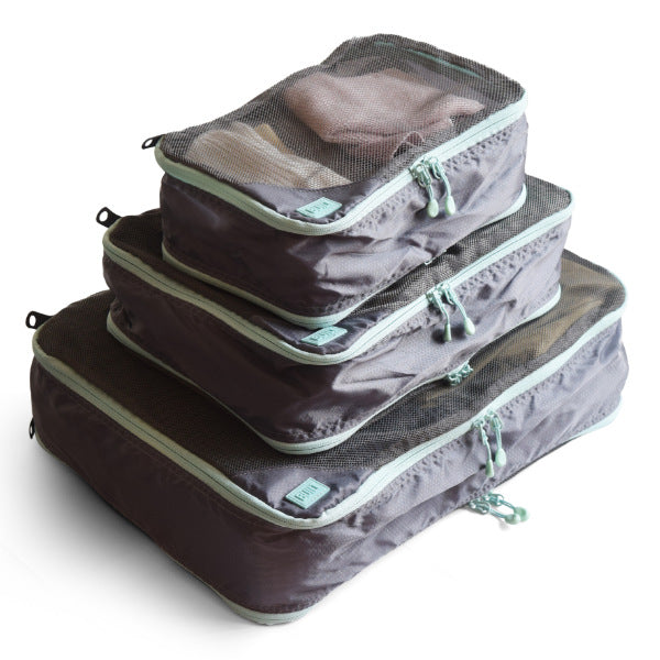 トランクや旅行カバンの中をすっきり整頓できるトラベルバッグです。シンプルなデザインで、男女問わずお使い頂けます。Sサイズ、Mサイズ、Lサイズが3点とも揃っているため、用途別に使い分けができ、同じカラーなので統一感も出せます。ファスナーは上下の2箇所にあり、どちらからも収納物を取り出せるので、使い勝手抜群です。