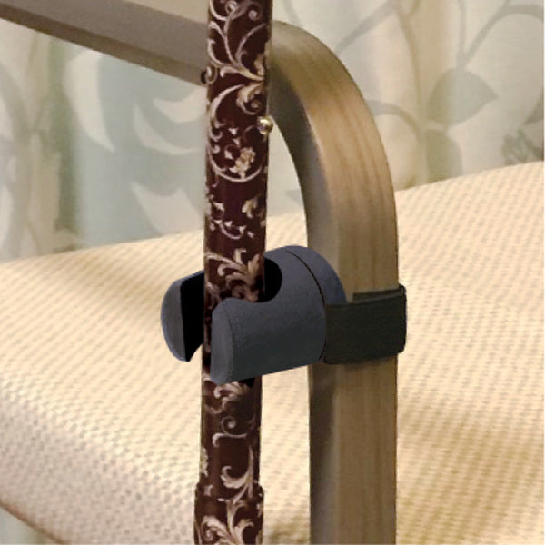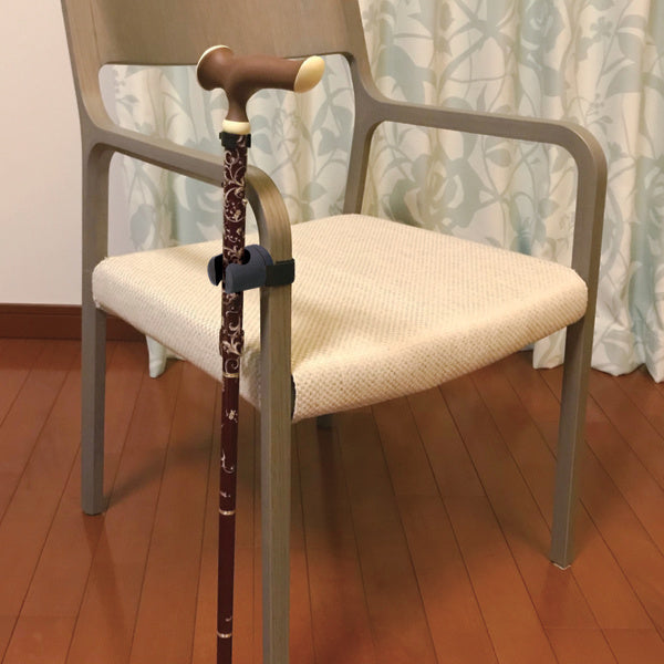 杖に直接取り付ける、杖の転倒を防ぐステッキホルダーです。杖を立てかける際に倒れたり不安定になる心配を解消してくれます。椅子などにホルダーを取りつけると倒れた杖を拾うことも少なくなり、体への負担を減らしてくれます。テーブルや椅子に簡単に固定できるので、置き場の心配なく安心して外出できます。