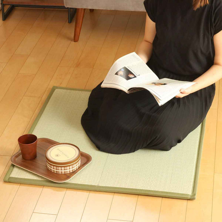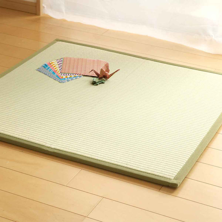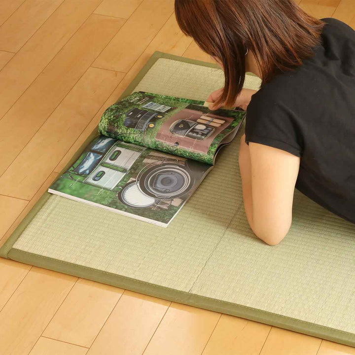天然素材であるい草は空気を吸い取り浄化する防臭効果があり、綿の敷物の約5.5倍の抗菌性が期待できます。また、い草の表面に日本製の防カビ剤が薄く塗られているので、毎日安心してお使いいただけます。