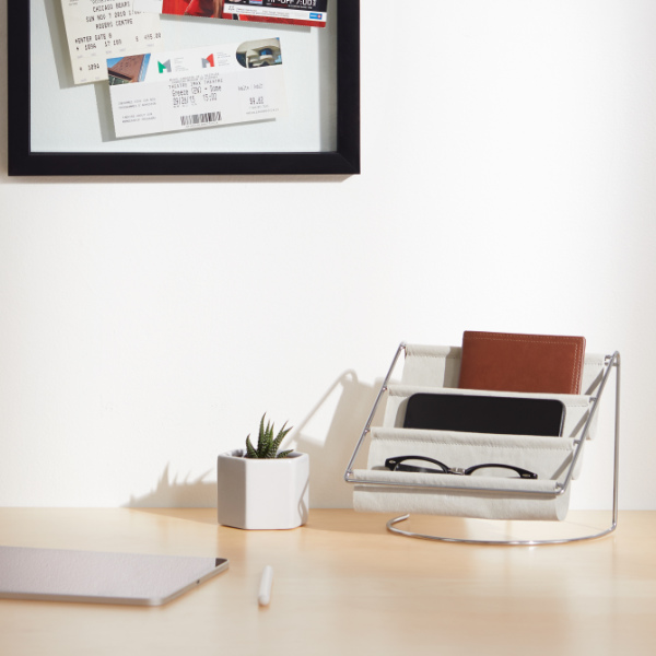 こちらは一般的なファイルオーガナイザーからインスピレーションを受けてデザインされました。ポケットはひな壇形になっており、収納物が見つけやすく取り出しやすいので、オフィスや在宅ワーク時のデスク上にも最適です。デスク上を整理整頓することで、作業スペースを広く確認できてさらに作業効率もアップします。