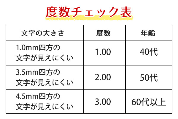 ●度数は+1.00、+2.00、+3.00の3タイプあります。