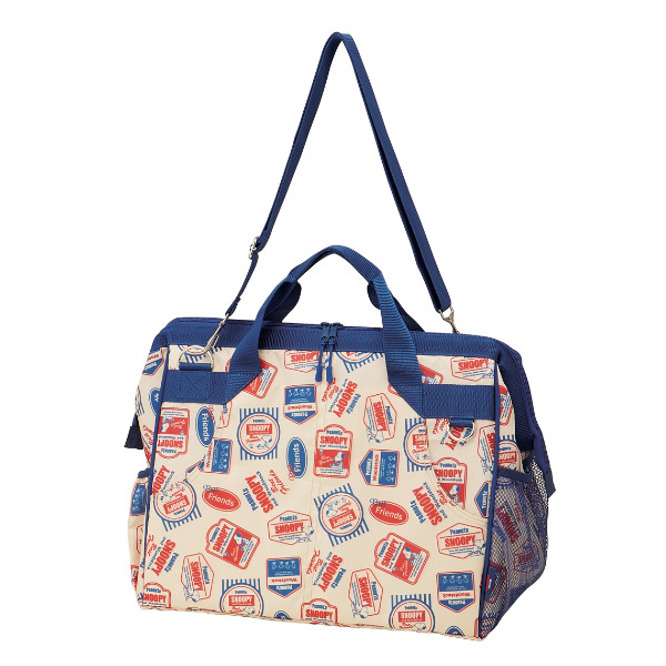 外側にはポケットがたくさんついているので、レジャーやピクニックに最適です。大きく開くがま口は開け閉めしやすいWファスナータイプです。また、着脱可能なショルダーベルト付きなので、肩に掛けて使うこともできます。