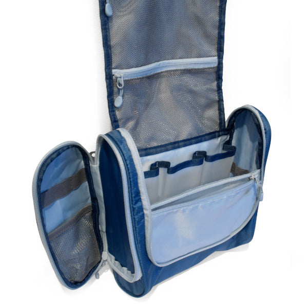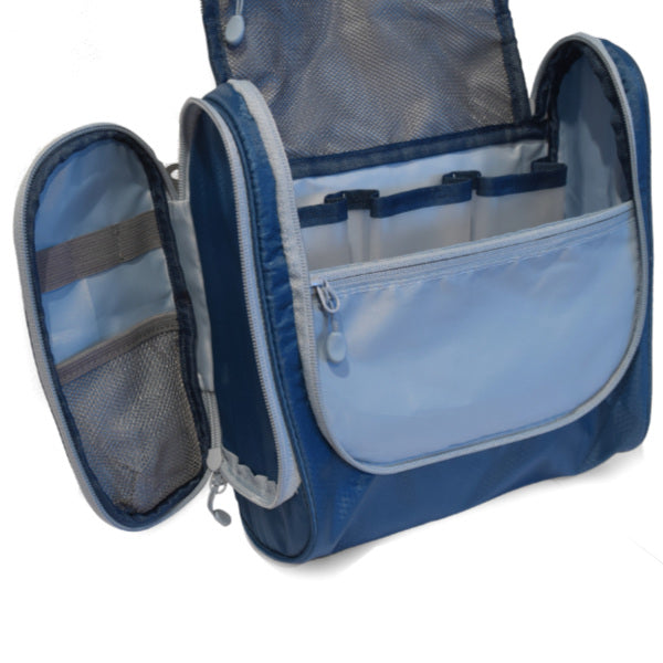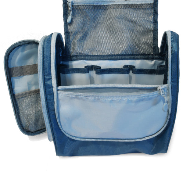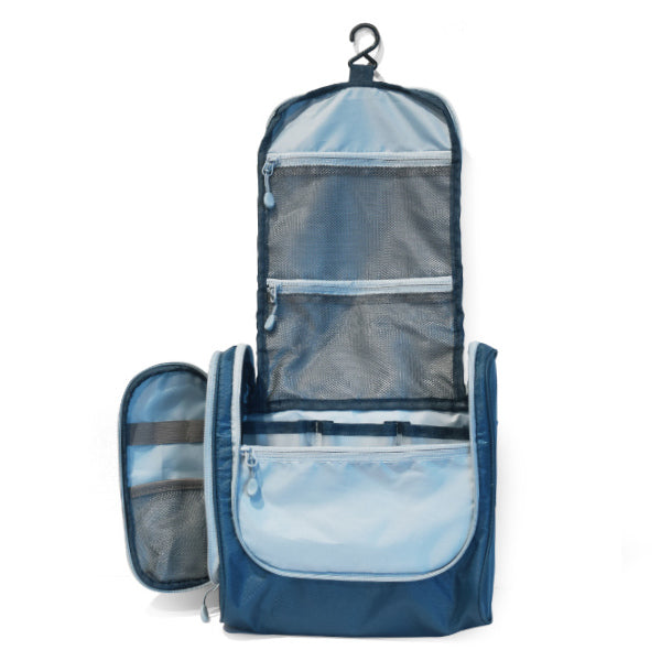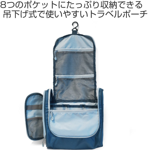 8つもポケットが付いていて、たっぷり収納できるトラベルポーチです。シンプルなデザインで、男女問わずお使い頂けます。旅行先の洗面台やバス周りなどにフックで吊り下げて使えるので、小物をすぐに手に取れて便利です。軽量なナイロン製で、持ち運びも快適です。