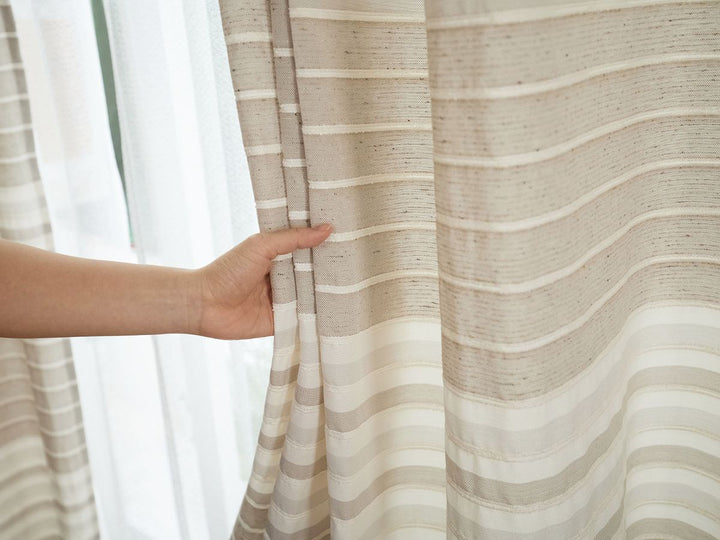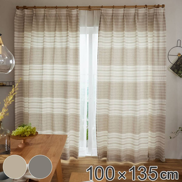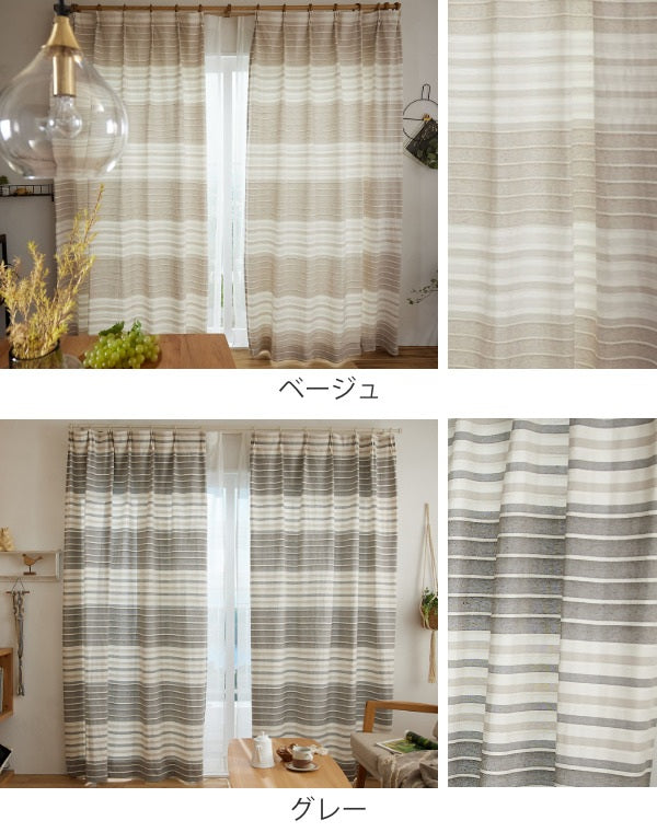 天然素材と化繊が織りなす優しい雰囲気が魅力的で、太陽の光を心地よく感じる生地感です。カーテンと同柄のタッセルが付属しています。