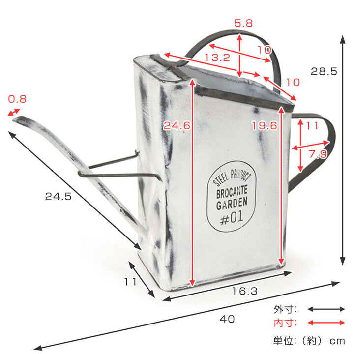 愛用され続けてだんだんと塗装が剥げていく様子を、アンティーク風加工で丁寧に表現しています。無骨なメタルカラーはジャンクガーデンの景観にもピッタリです。