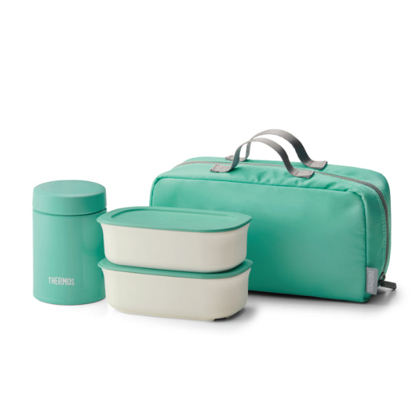 スープジャーと2つの容器をまとめて専用ポーチに入れられるランチセットです。容量はスープジャーが200ml、容器がそれぞれ300mlの800ml分の食事がとれるセットなので、女性から男性まで満足していただけるサイズです。専用ポーチに収納すればスッキリ持ち運びができて便利です。