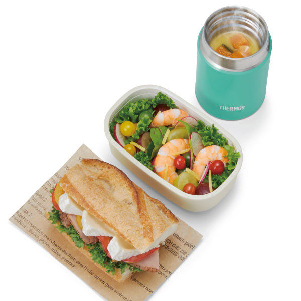付属のスープジャーは高い保温・保冷力で一年中お使いいただけます。また、スープジャーの縁は丸みを帯びた形状になっているので、口当たりが優しいです。