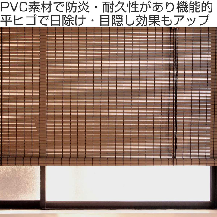 PVC素材のすだれスクリーンです。耐熱性が高く変形しにくい、高耐久性です。天然素材にない特徴を持ちながらも、天然ものに近い表層を持ちます。シンプルなので、和風・洋風問わず色々なテイストのお部屋に馴染みます。