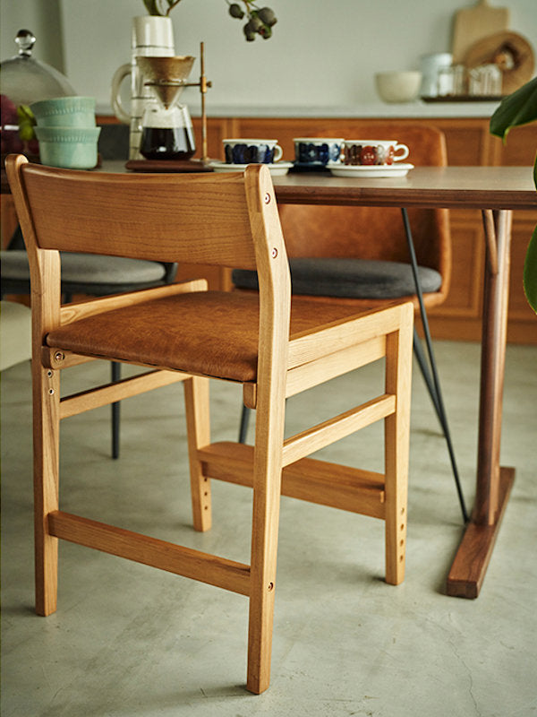 座面の高さを変えることができるチェアです。一般的なチェアに座るとテーブルが高すぎてしまうお子様にお勧めです。座面高を55cmまで上げることができるため、テーブルとの距離が近くなりお食事がしやすくなります。また、成長に合わせて座面高を下げていけば、大人になってもちょうど良い高さでお食事を楽しむことができます。