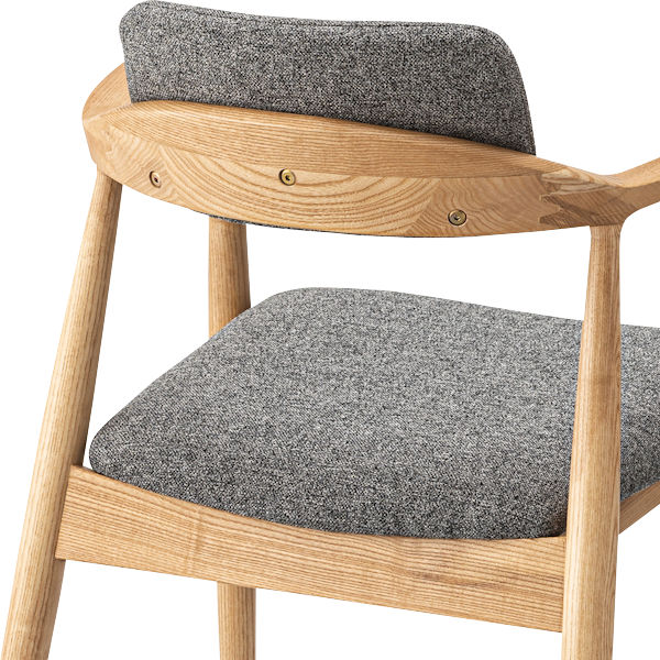 ゆったりと過ごすおうち時間にぴったりなフォルムで、モダンなデザインが魅力のダイニングチェアです。天然木アッシュを贅沢に使用しており、表情豊かな木目がお部屋に温もりを与えてくれます。