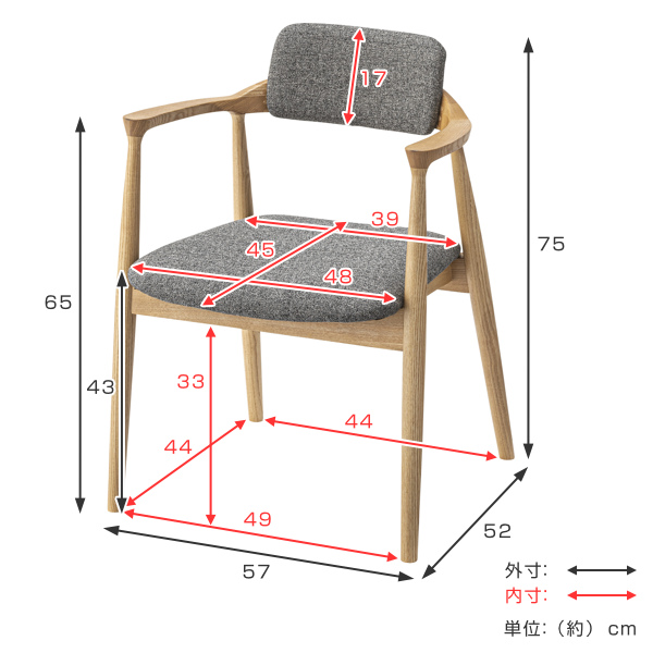 | サイズ | 約 幅57×奥行52×高さ75(cm) 座面高:約 43(cm) |