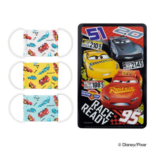 カーズのイラストがプリントされた子ども用マスク3枚と子ども用マスクケースのセットです。保育園や幼稚園の通園におススメです。