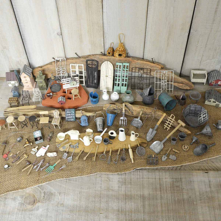 日常ではあまり見かけないようなちょっとマニアックなミニチュアサイズのはけです。様々な素材を使い、職人がひとつひとつ丁寧に古道具の雰囲気を見事に再現しました。ガーデン雑貨としてはもちろん、インテリア雑貨としてもお使い頂けます。