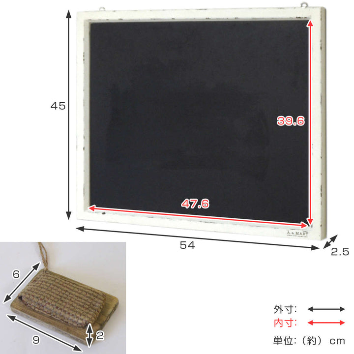 玄関先でちょっとしたウェルカムボードとして使ったり、室内でメッセージボードやお部屋のネームプレートとしても使えます。黒板消しが1つ付属します。