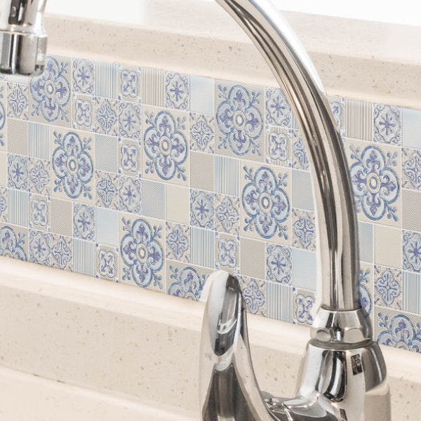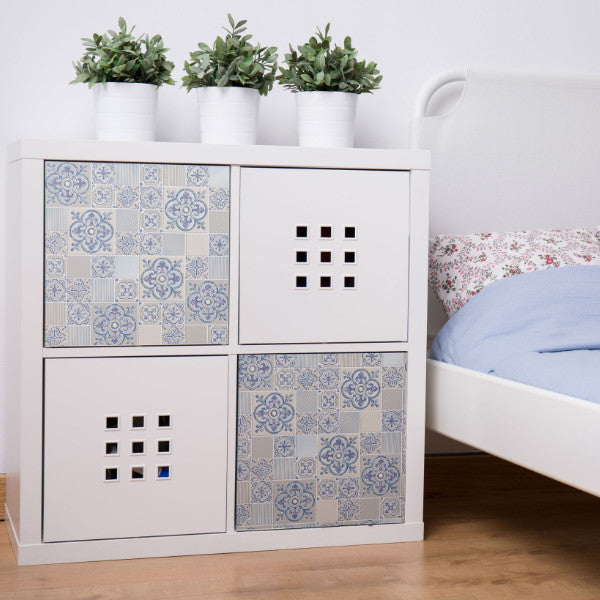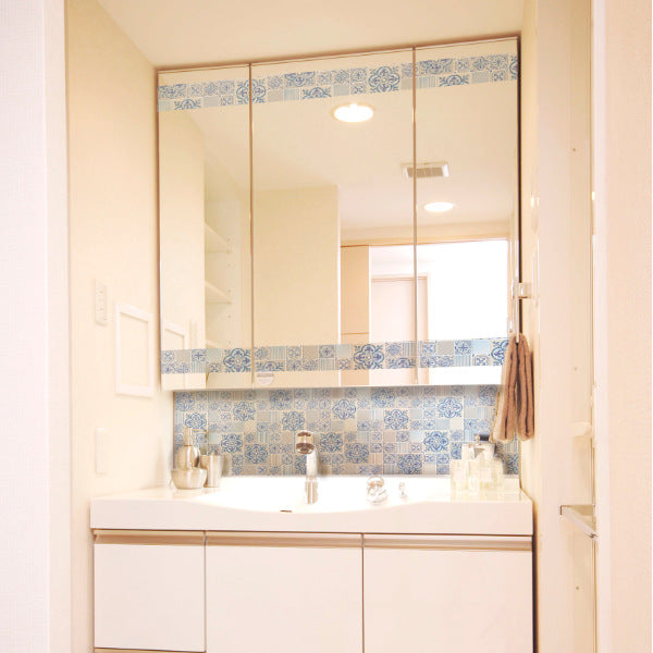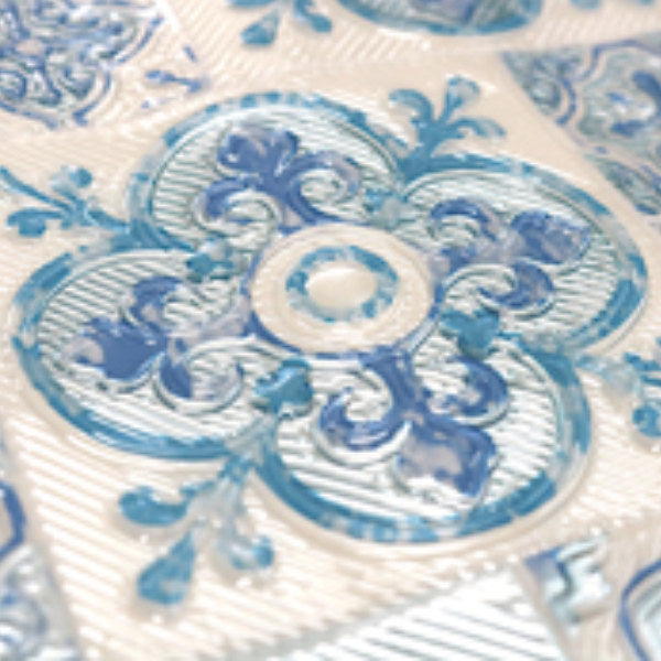 ぷっくりとした立体感がポイントでタイルのような質感を演出してくれます。ブルーの模様が可愛らしくて爽やかな印象です。シートはカット可能なので家具や雑貨のデコレーションにもぴったりです。